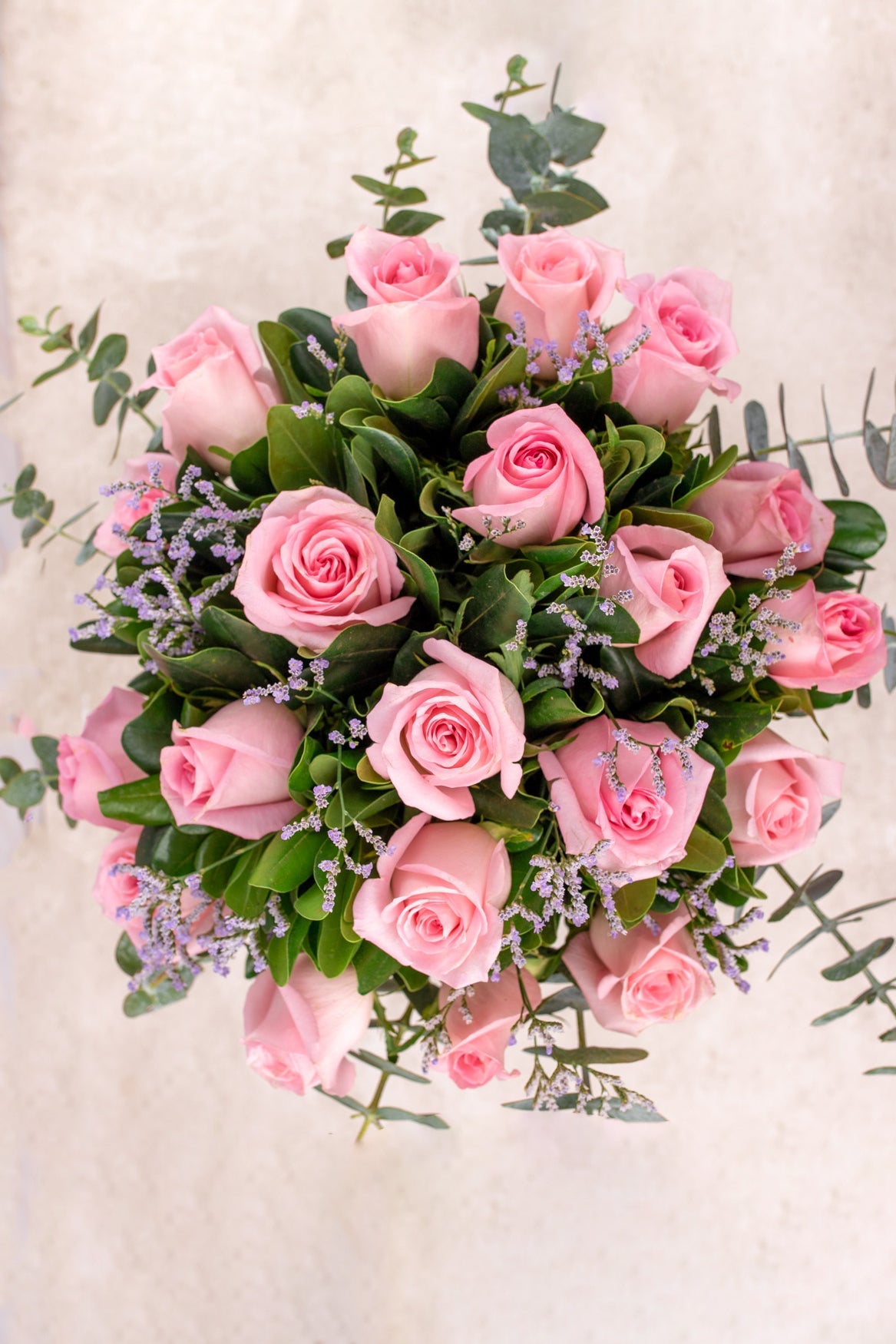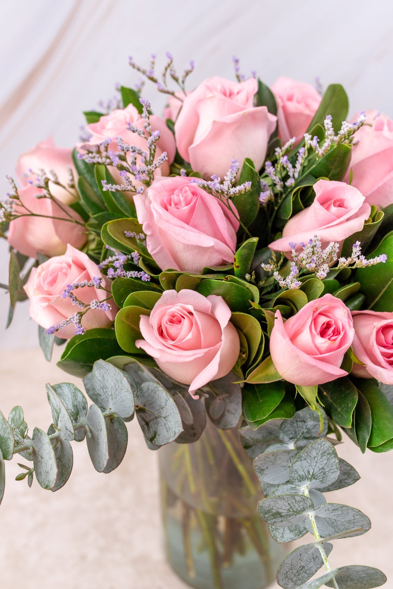 - Flores que contiene: Rosita Clara, Limonium, Clavos Japonés, Dólar, Escobilla.