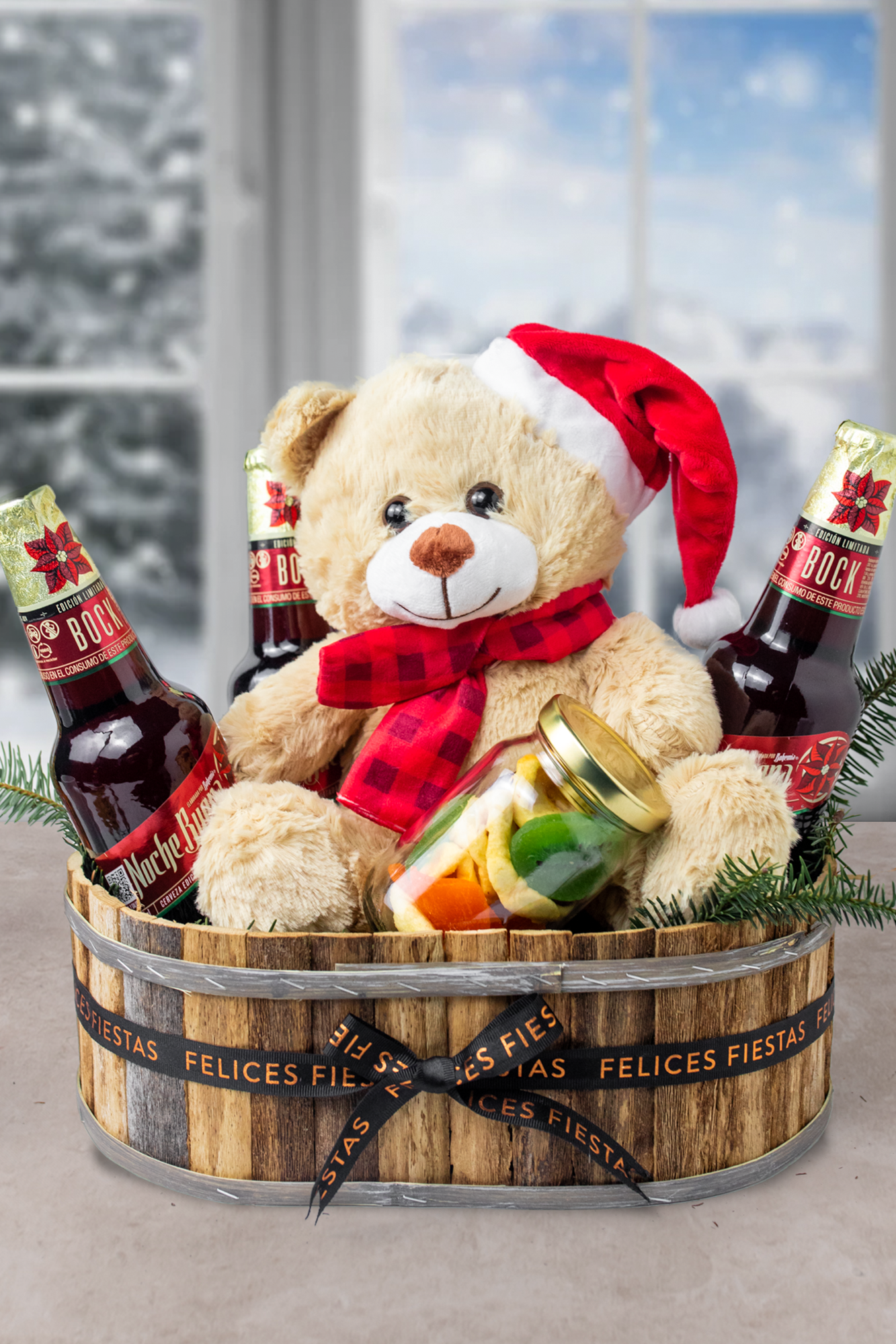 Dulce Brindis combina ternura y celebración en un solo regalo. Incluye un adorable osito navideño de peluche que aporta calidez a cualquier rincón y un par de cervezas Noche Buena, perfectas para brindar por los momentos especiales de la temporada.