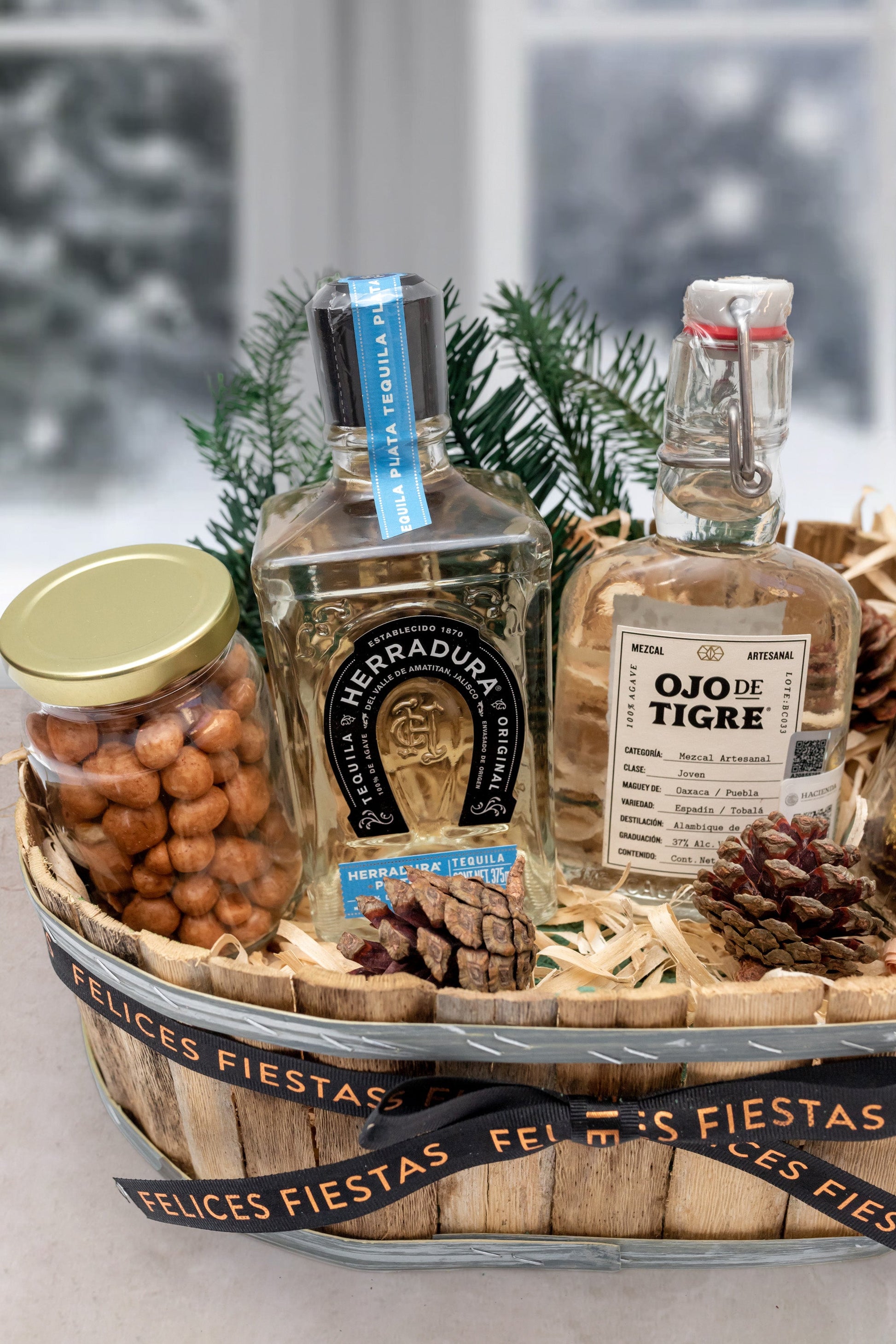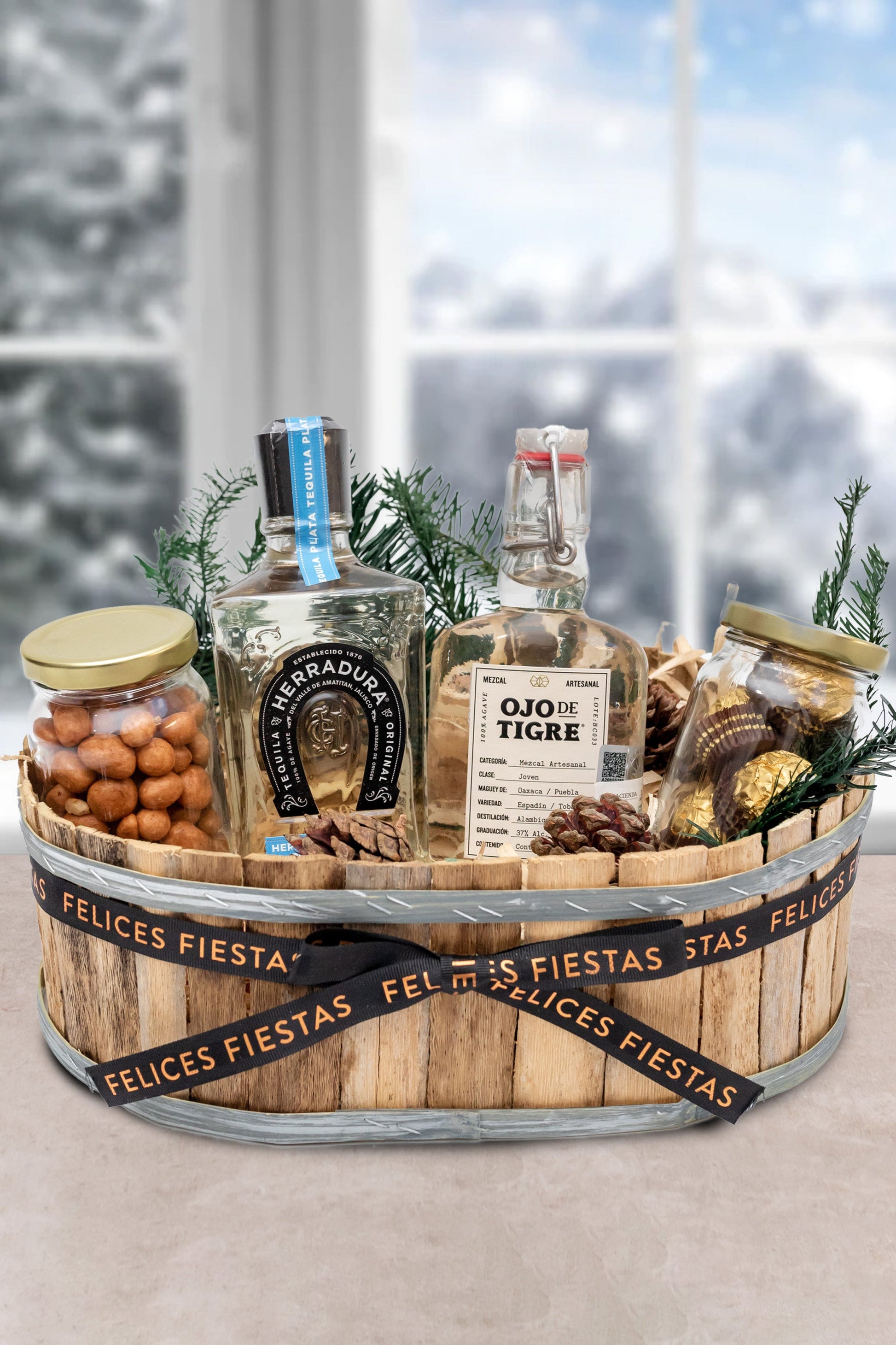 Tequila Herradura 375 ml, Mezcal Ojo de Tigre 200 ml, Cacahuates Japoneses y Chocolates Ferrero Rocher