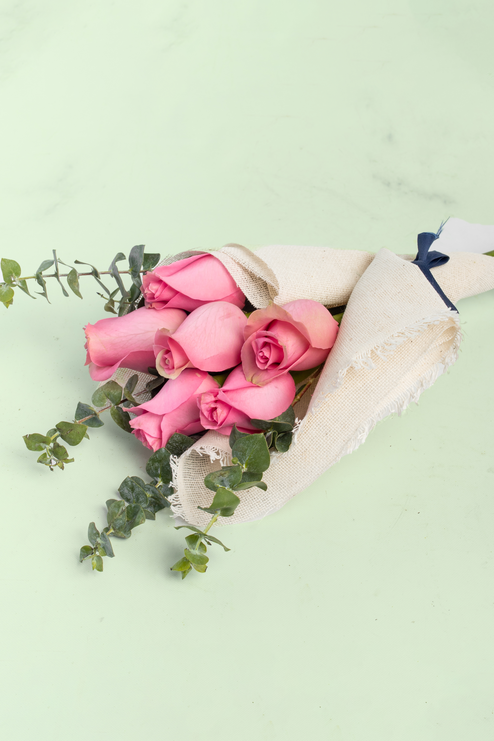 Ramo 6 Rosas Rosas - Envoltura Yute XAL