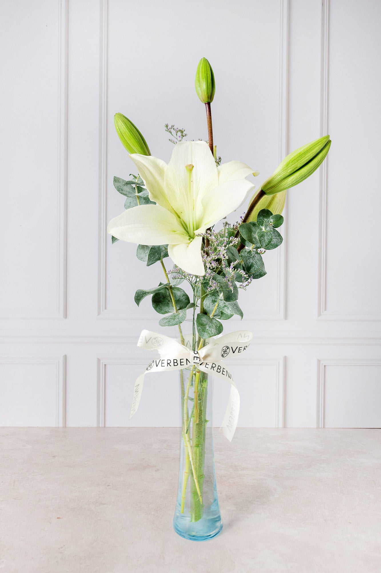Dale a tu hogar un toque de sofisticación con Algodoncito. Esta hermosa Lilium blanca en violetero aportará un toque único y encantador a tus espacios. ¡Perfecta para dar un toque de originalidad y elegancia a cualquier decoración!