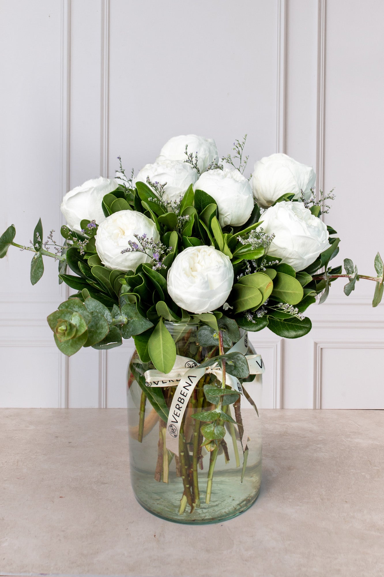 Disfruta de este hermoso ramo de flores con peonias blancas. Estas flores son la forma perfecta para agregar encanto y belleza a cualquier ocasión. La Bondad - Peonia Blanca es una forma encantadora de expresar tus sentimientos a aquellos que amas.