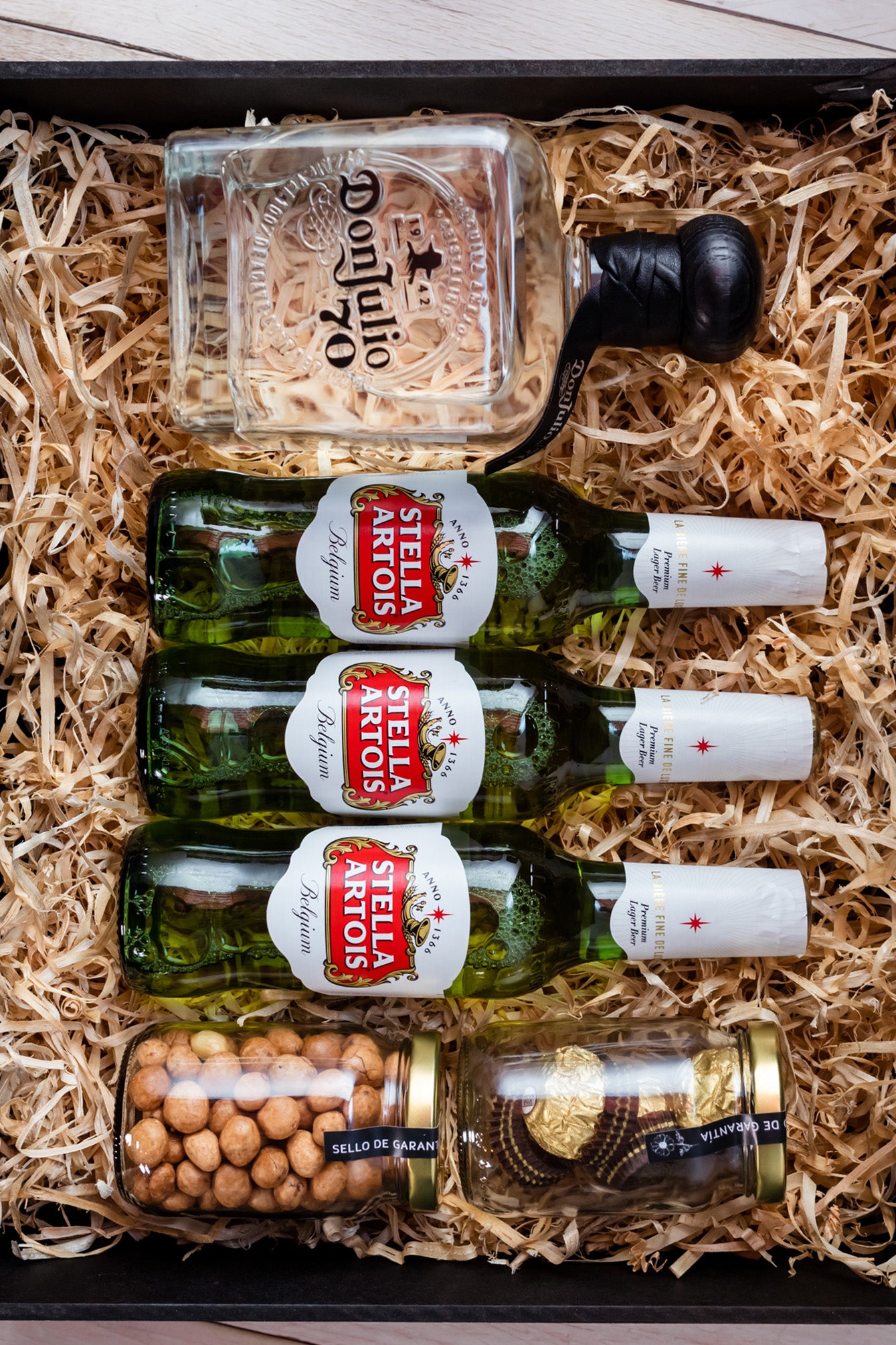 - Chocolates finos: Seleccionados para complementar cada sorbo de tequila, creando una armonía de sabores.