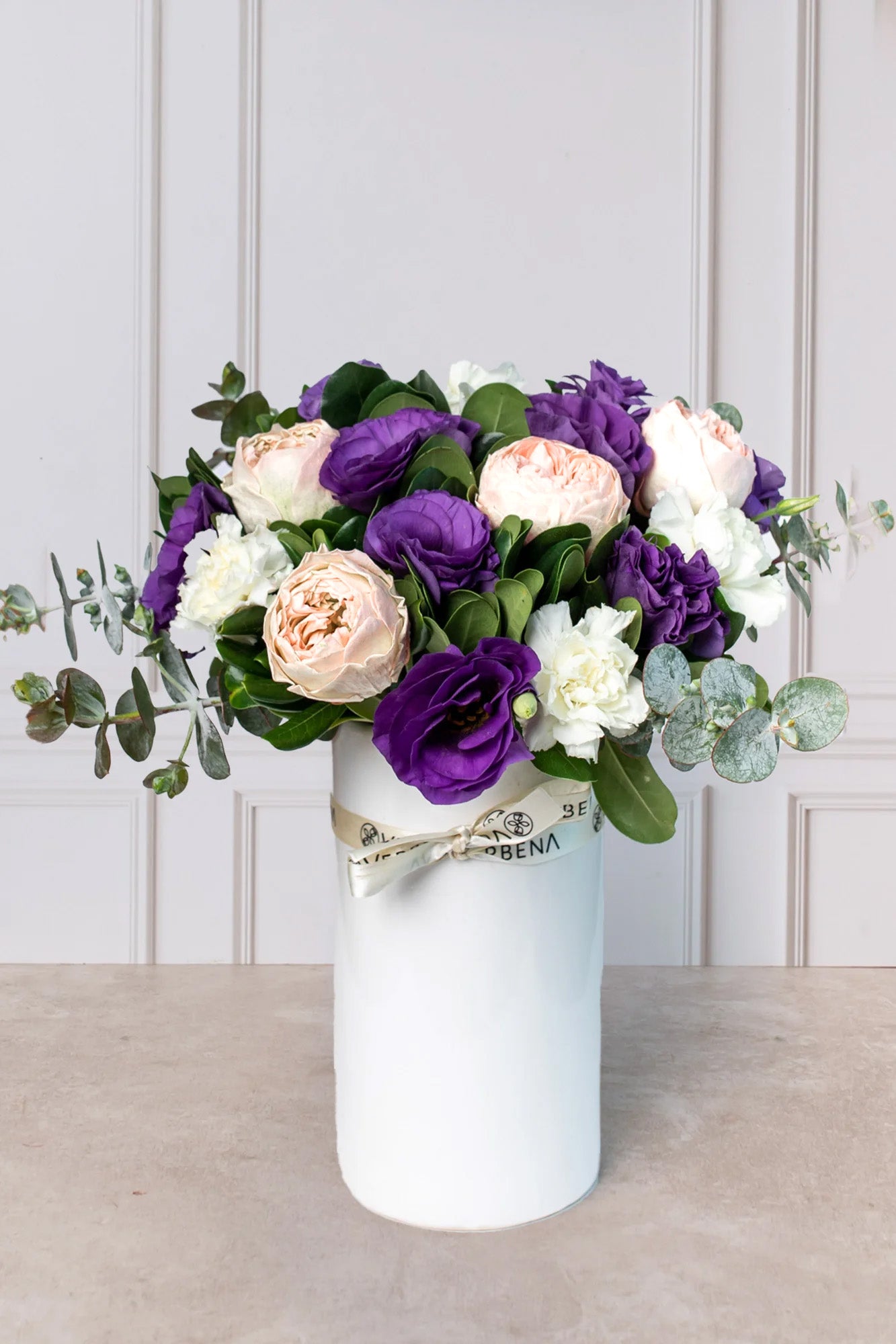 - Flores que contiene: Peonia Rosa y Lisianthus Morado