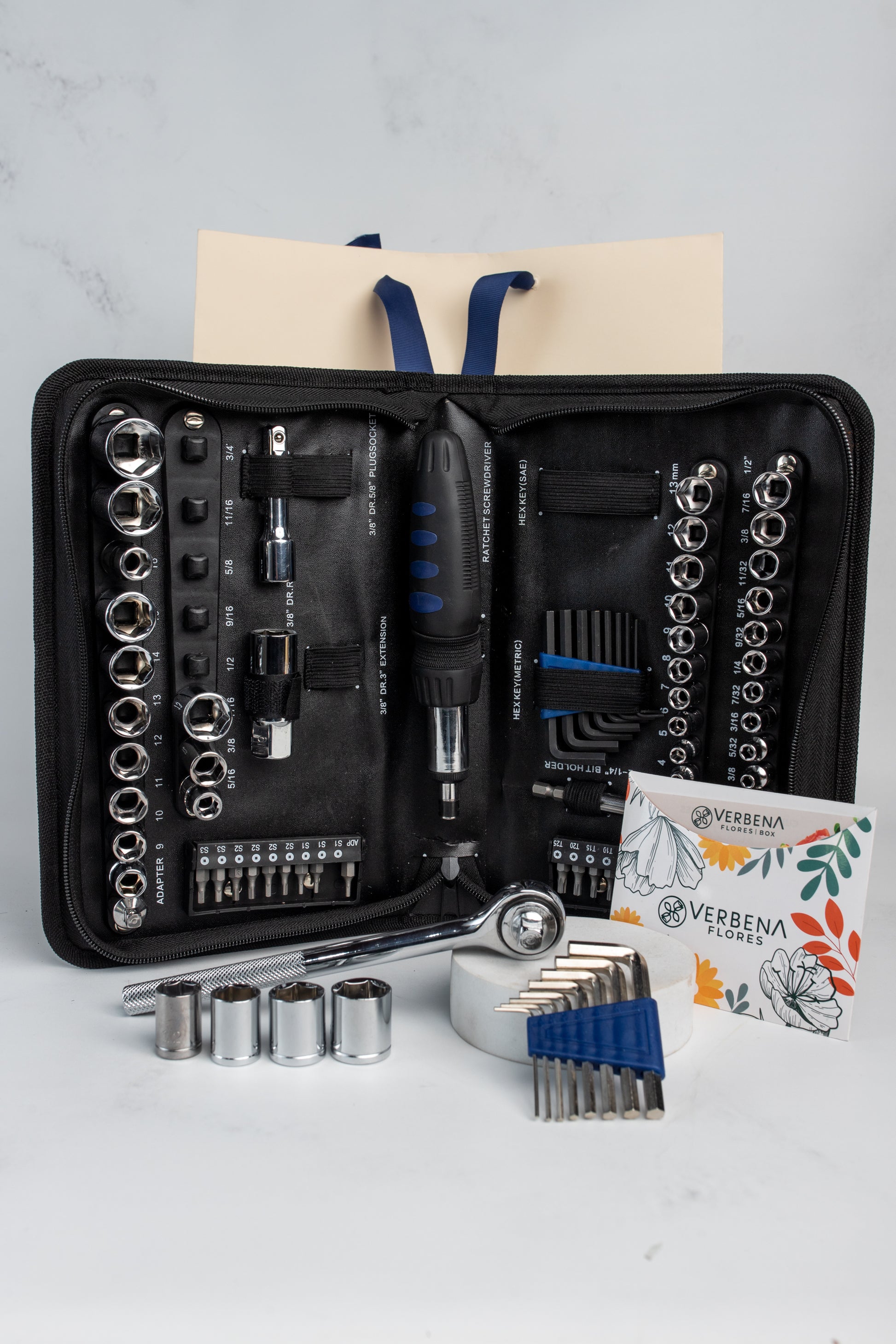 Para esa persona especial que la hace de carpintero, eléctrico, plomero y mecánico. Es el regalo perfecto para todas las actividades que se tienen que hacer en la casa. El kit de cuenta con 83 herramientas, un desarmador con sistema de matraca, un estuche que es super práctico y además muy duradero por que está elaborado de nylon 100%.